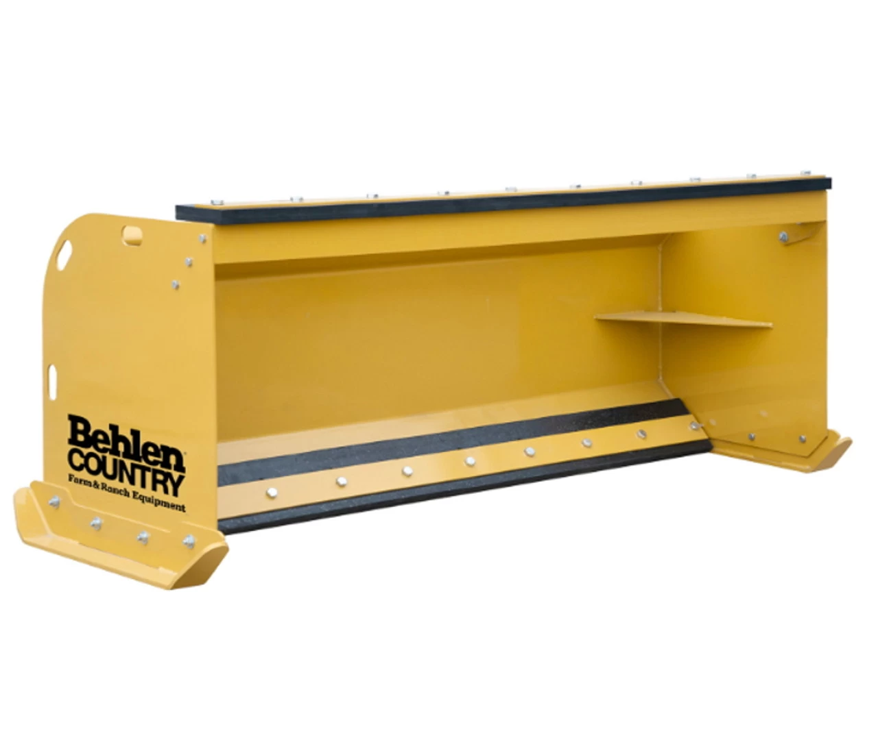 The Behlen Country quick-attach Snow Pusher can be used with skid steer loaders, compact track loaders and utility tractors outfitted with front-end loaders with quick-attachment capabilities.