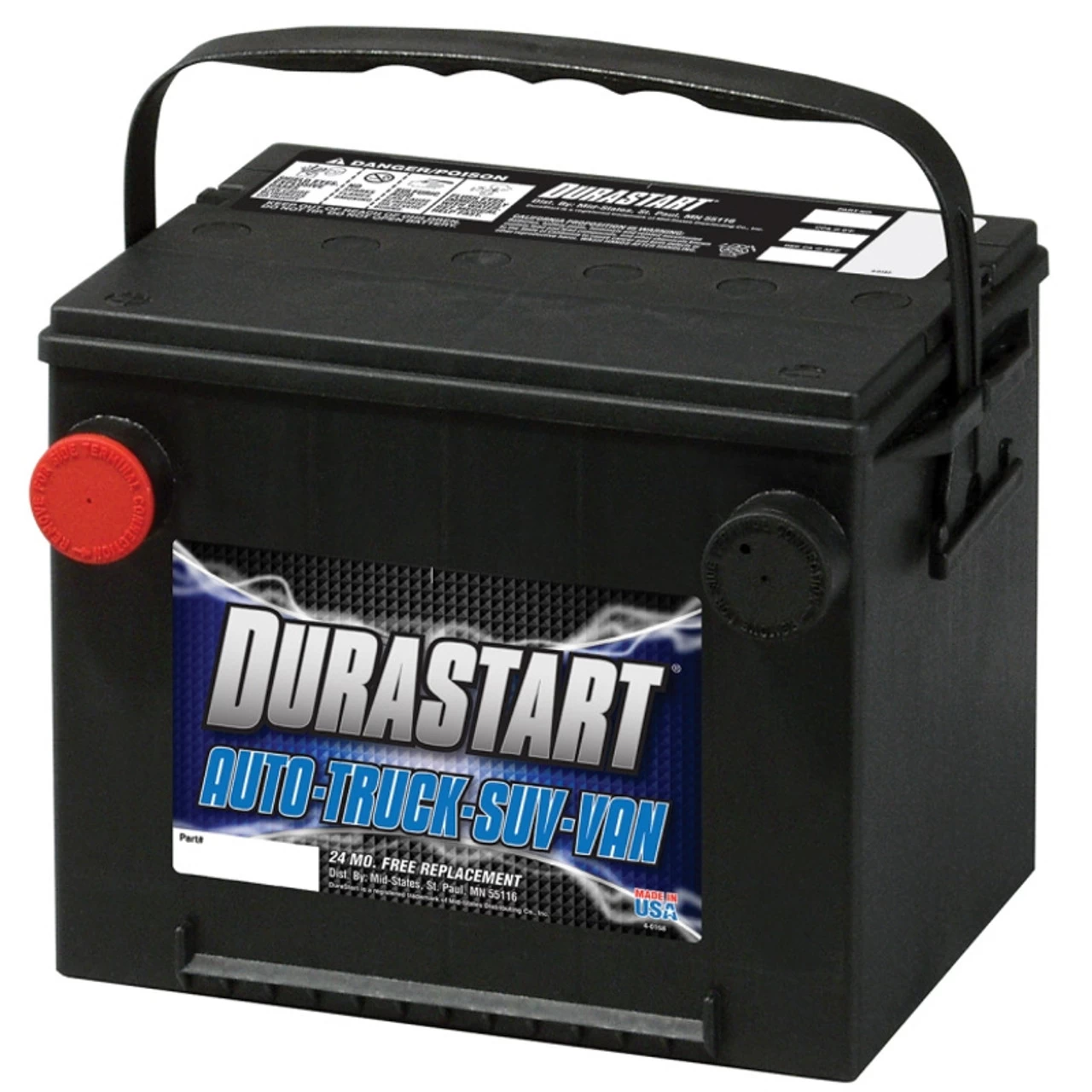 Durastart Batteries are designed to get you and your equipment going! Durastart Batteries are manufactured with the Cold Cranking Amps, Reserve Capacity and vibration resistance to keep you operating in demanding environments. 24 month warranty.