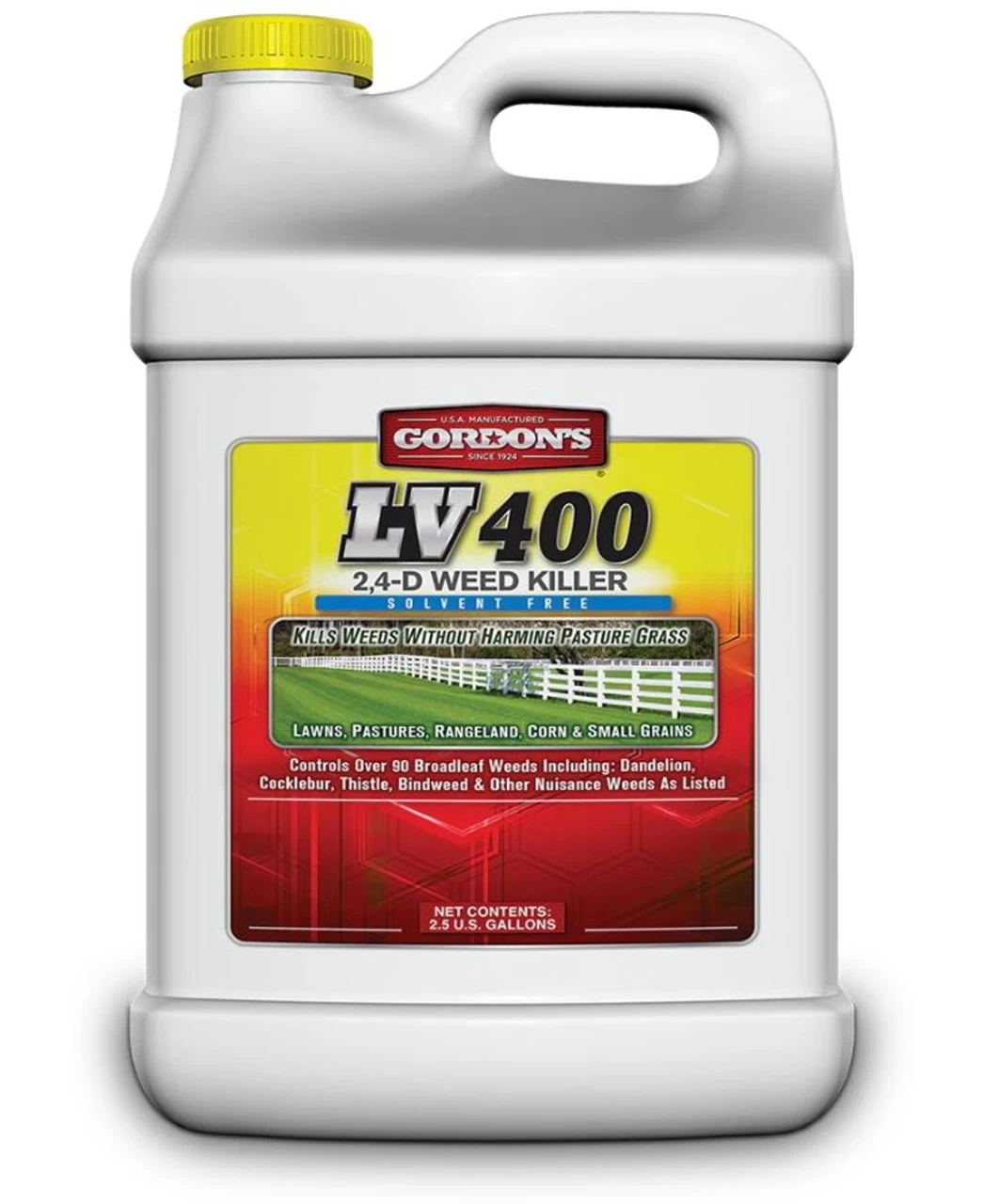 Get dependable broadleaf weed control with Gordon’s 8601122 LV 400 2,4-D Solvent Free Weed Killer Concentrate. This weed killer for lawns controls 90+ listed species of broadleaf weeds. This weed killer for grass mixes easily with liquid fertilizers.