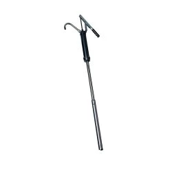 Die cast head with steel piston and brass segments that assures long life and durability. Curved discharge spout with garden hose threads. Fits 15-55 gallon drums with standard 2 inch bung openings. Telescopic suction tube. Dispenses 10oz per stroke.