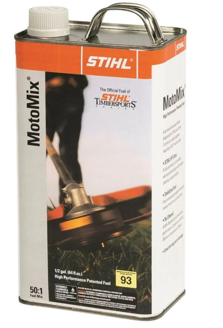 STIHL MotoMix 1/2 Gallon is a patented premixed fuel, specially blended for ultimate performance. Like a sports drink for your engine, this 50:1 mixture is a combination of premium non-ethanol, high-octane motor fuel and our highest-quality STIHL HP Ultra Oil. Clean and convenient, MotoMix eliminates the hassle of mixing your own 2-stroke engine fuel while providing superior performance and lubrication. STIHL MotoMix contains no ethanol, allowing it to maintain stability for up to two years after the seal is broken – so it stays fresh in your equipment during long storage periods.