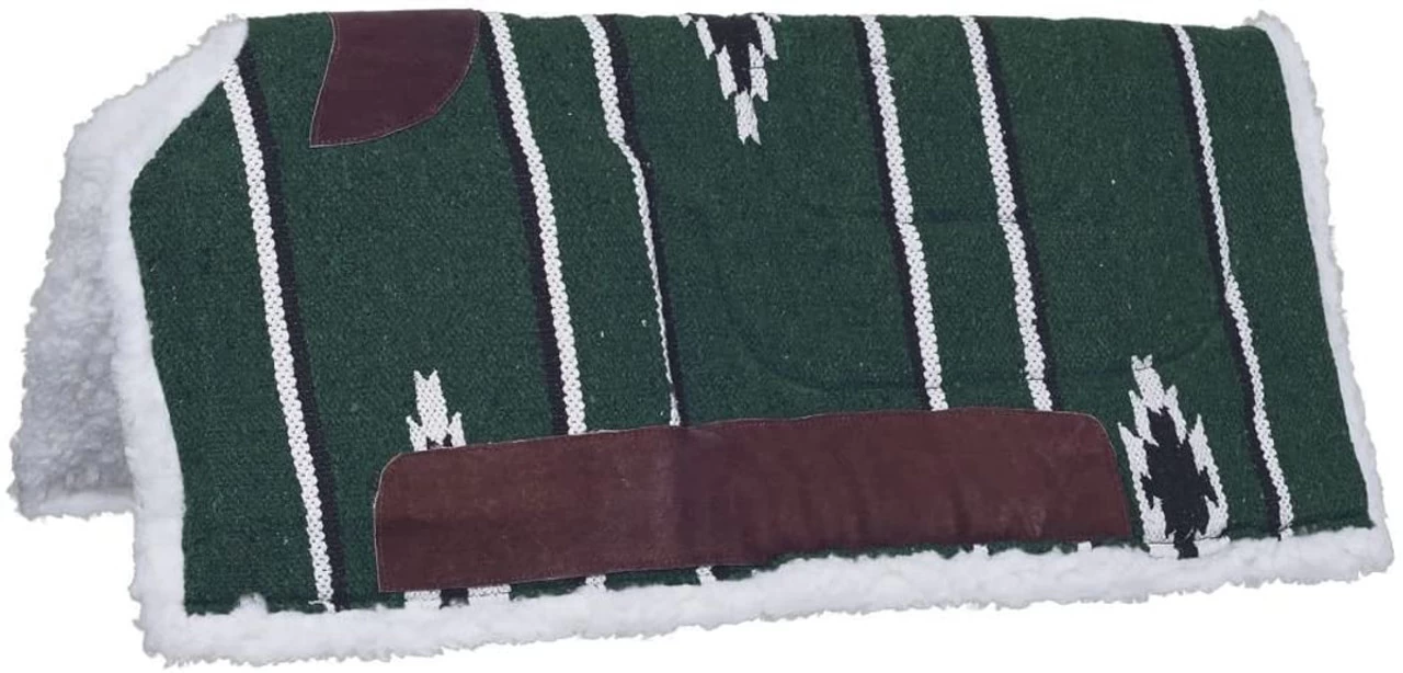 A practical combination of hospital tested fleece lining, heavy saddle pad felt center, and acrylic blend Sierra blanket top make this pad unusual and attractive. Leather wear guards.