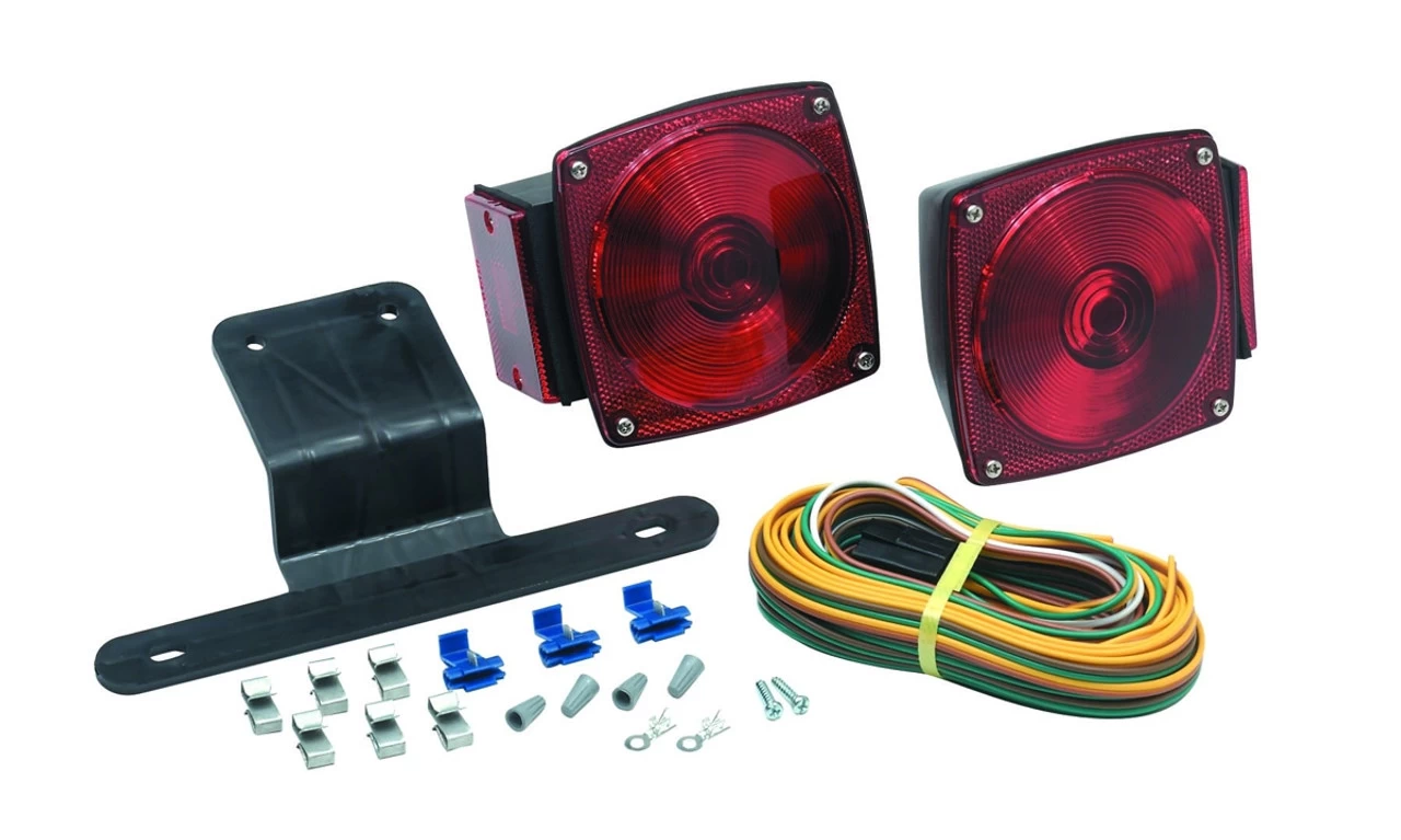 Universal Square, Red, Universal Trailer Light Kit, Stud Mount, Hard Wired Connection