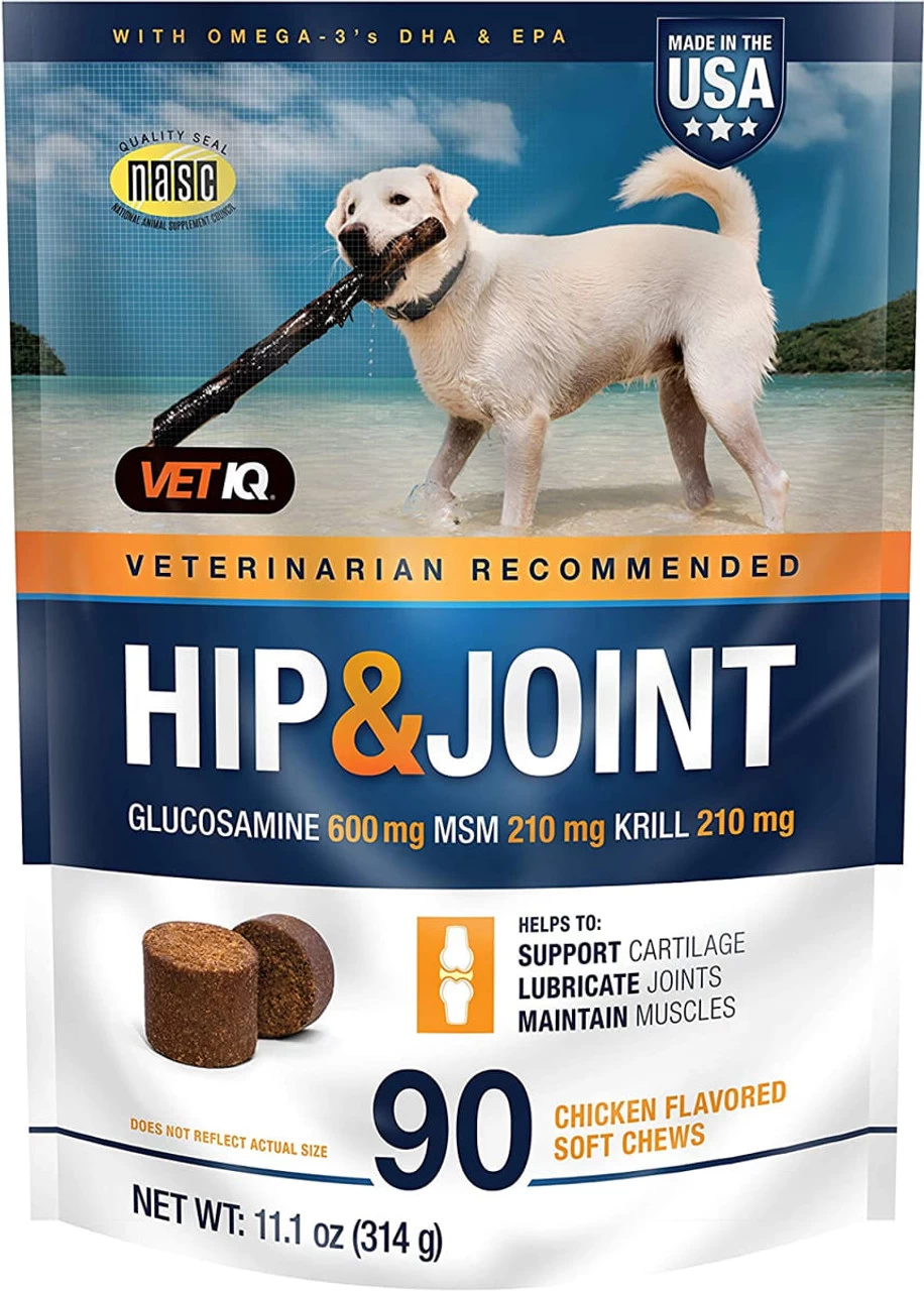 VET IQ Hip & Joint Supplement For Dogs- 90 Count Bag