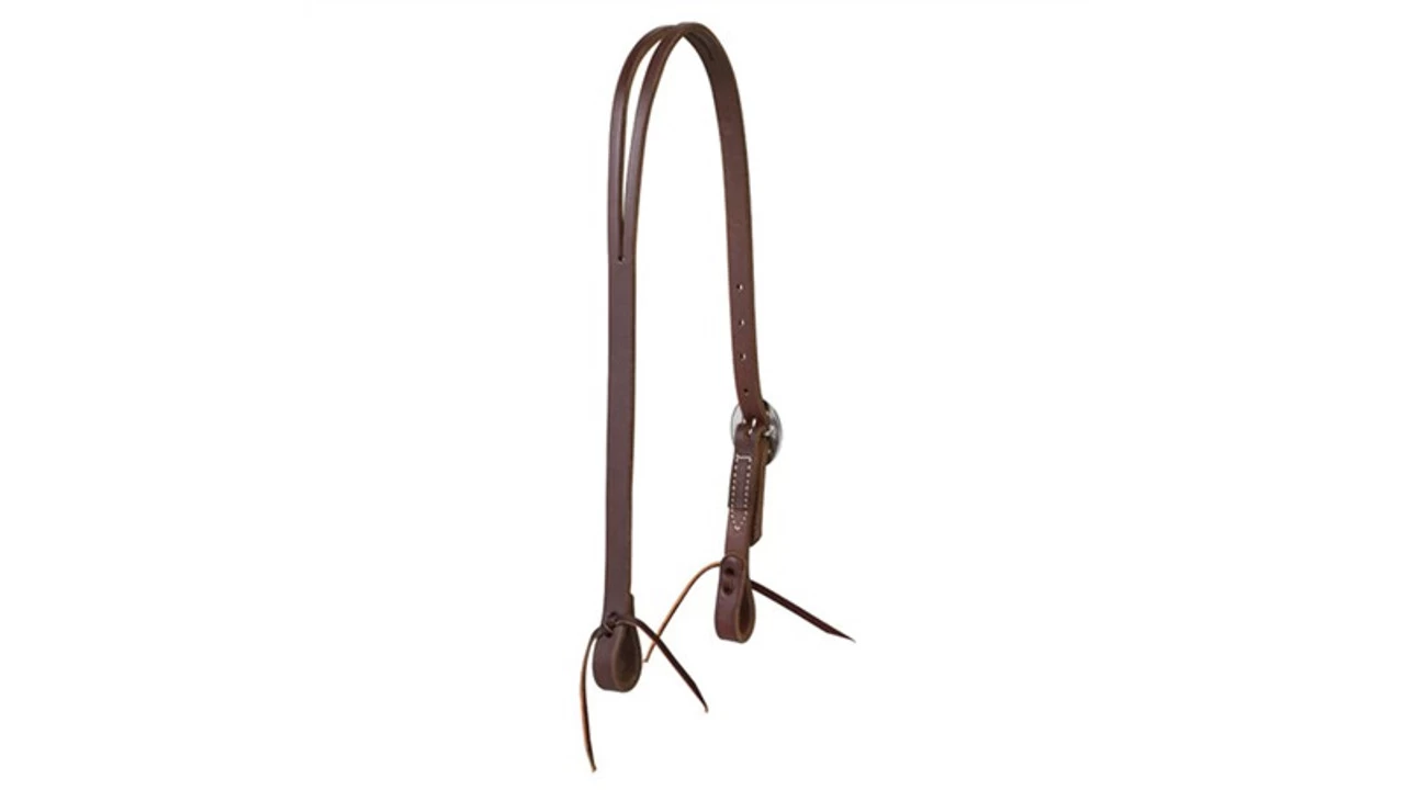 Extra heavy harness leather is dipped in oil, dressed with saddle butter and hand rubbed for the ultimate in performance and a rich golden chestnut color. This sleek 3/4″ split ear headstall features lower buckle placement for your horse’s comfort.
